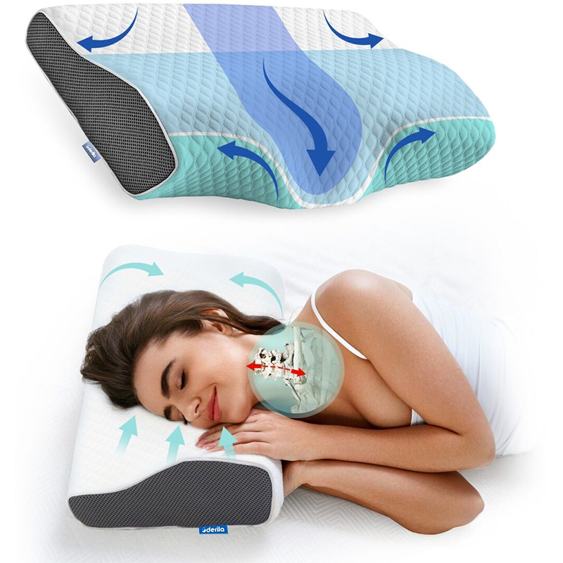 🛏️ Ergonomische Unterstützung | Das Kissen ist so gestaltet, dass es die natürliche Krümmung der Wirbelsäule unterstützt. Dies fördert eine gesunde Schlafposition und kann Nacken- und Rückenschmerzen reduzieren. |